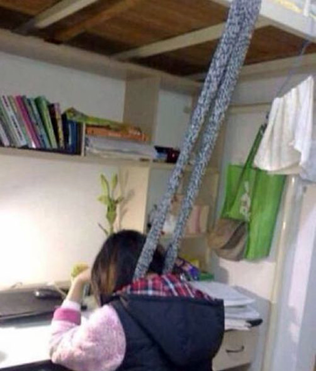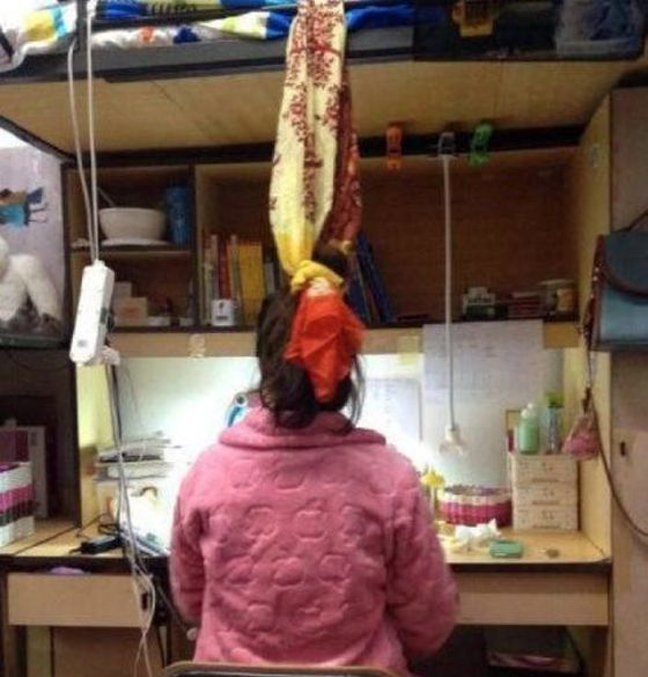 Μια εναλλακτική μέθοδο έχουν βρει οι Κινέζοι σπουδαστές προκειμένου να μην τους παίρνει ο ύπνος όταν το διάβασμά τους κρατάει μέχρι τις πρώτες πρωινές ώρες.