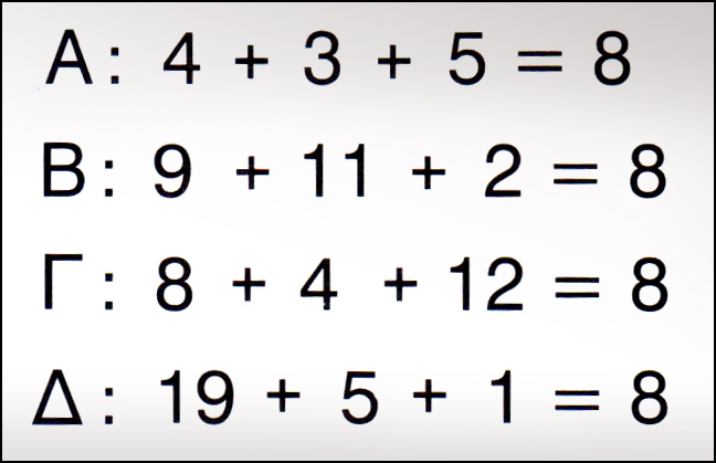 Γράφουμε τους αριθμούς στη λατινική τους μορφή και ο αριθμός στη δεξιά στήλη υποδηλώνει τον συνολικό αριθμό των ευθύγραμμων τμημάτων που χρειάζονται για τη λατινική γραφή των αριθμών.