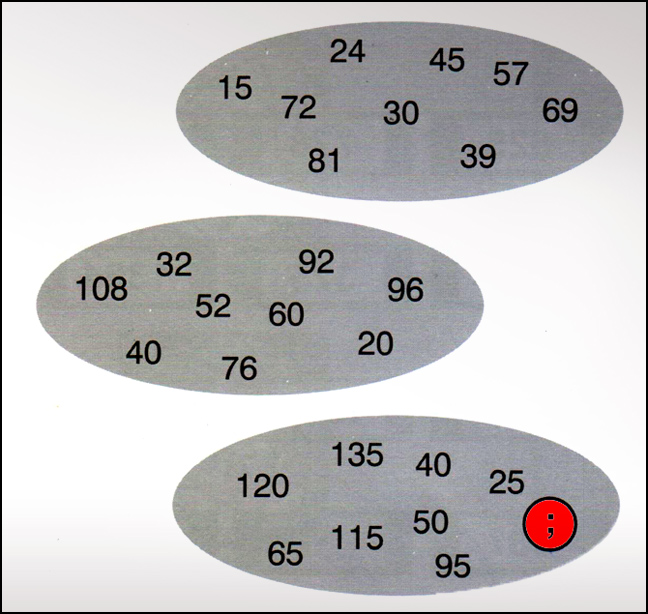 Η λύση Το 75. Κάθε έλλειψη περιέχει τα γινόμενα 3, 4 και 5 αντίστοιχα με τους ίδιους αριθμούς