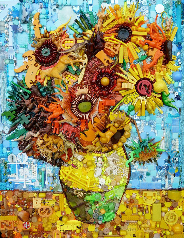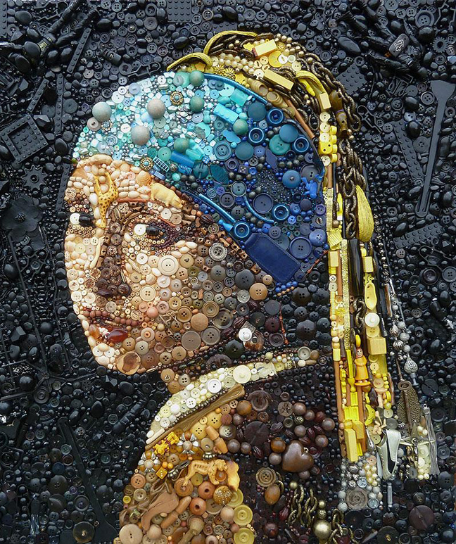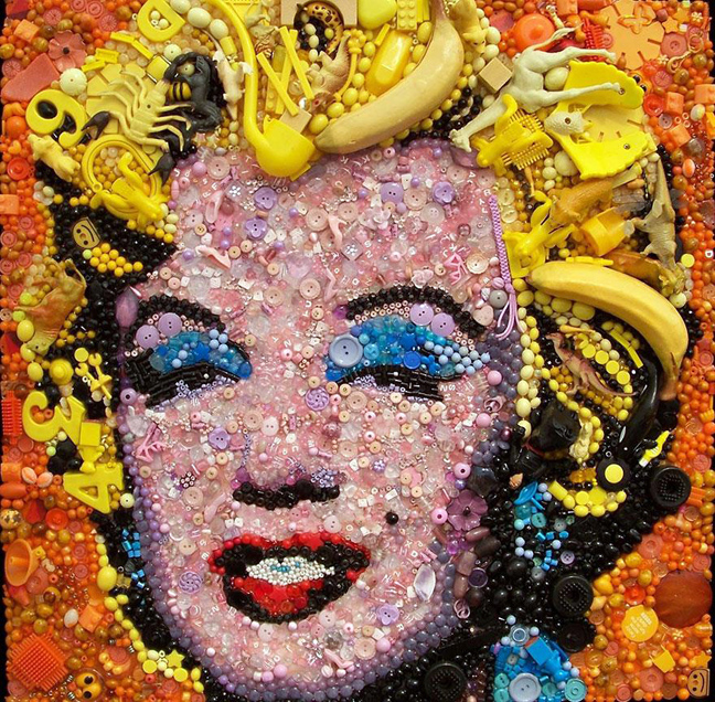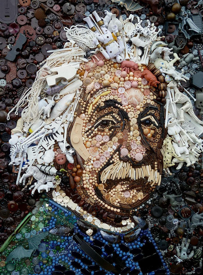 Ακόμα και τα πιο άχρηστα πράγματα στα χέρια της παίρνουν αξία και δημιουργούν διάσημους πίνακες και πορτρέτα ξεχωριστών προσωπικοτήτων.