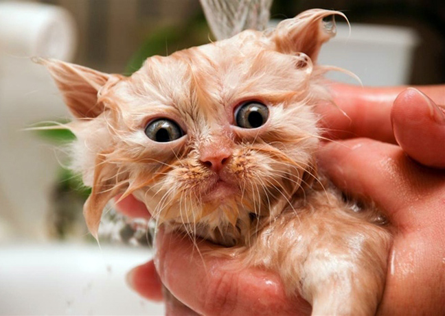 Δείτε τους μορφασμούς και τις φάτσες του όταν έρχονται σε επαφή με το υγρό στοιχείο.