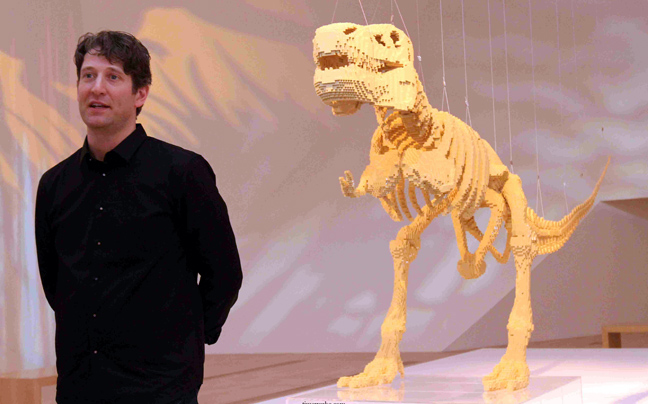 Ο δημιουργός του Nathan Sawaya από τις ΗΠΑ κέρδισε μια θέση στο βιβλίο ρεκόρ Γκίνες για το μοναδικό γλυπτό του το 2011.