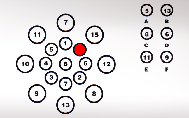 Η λύση F δηλαδή το 9. Ένας μεγάλος κύκλος πλην τον πλησιέστερο μικρό κύκλο, δίνει τον αριθμό του μεσαίου.