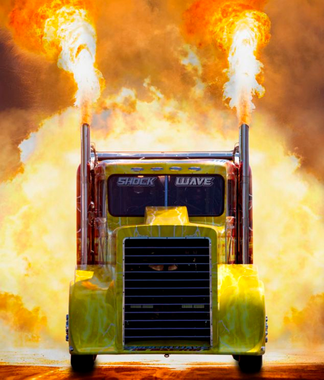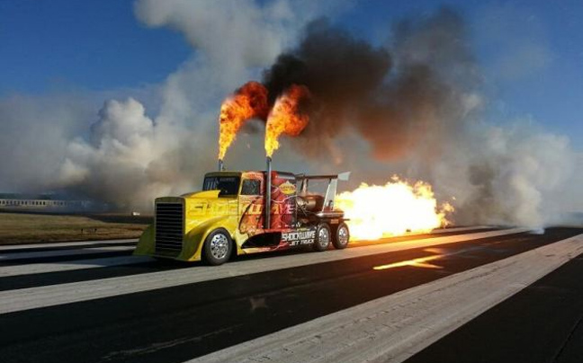Το συγκεκριμένο φορτηγό είναι ένα Chevrolet του 1950, ονομάζεται «Shockwave» και διαθέτει 36.000 ίππους, ενώ καλύπτει τα 400 μέτρα από στάση σε 6,5 δευτερόλεπτα. Έχει χαρακτηριστεί το γρηγορότερο φορτηγό, με τζετ μηχανή, στον κόσμο.