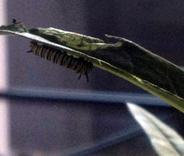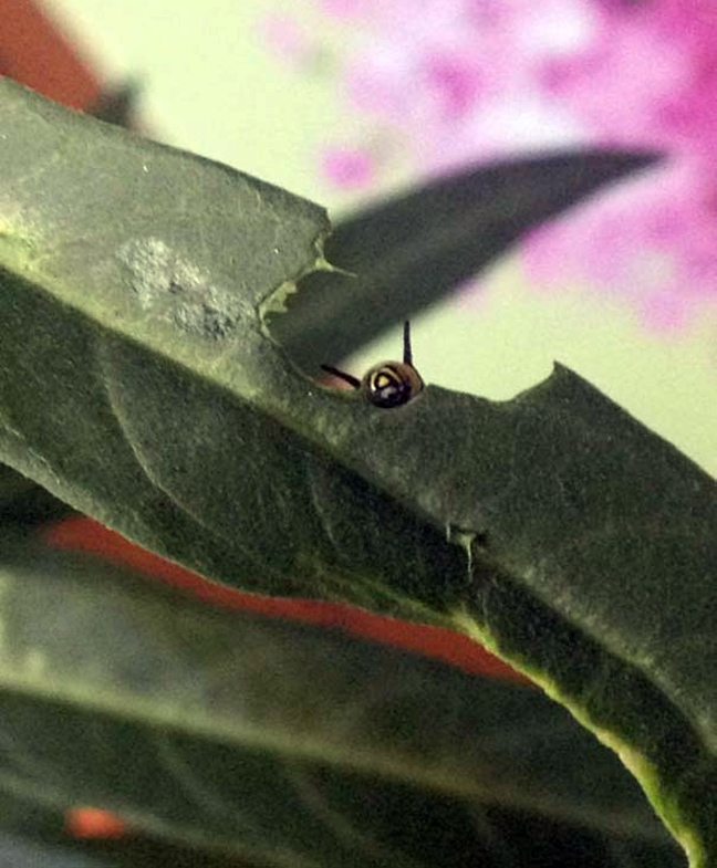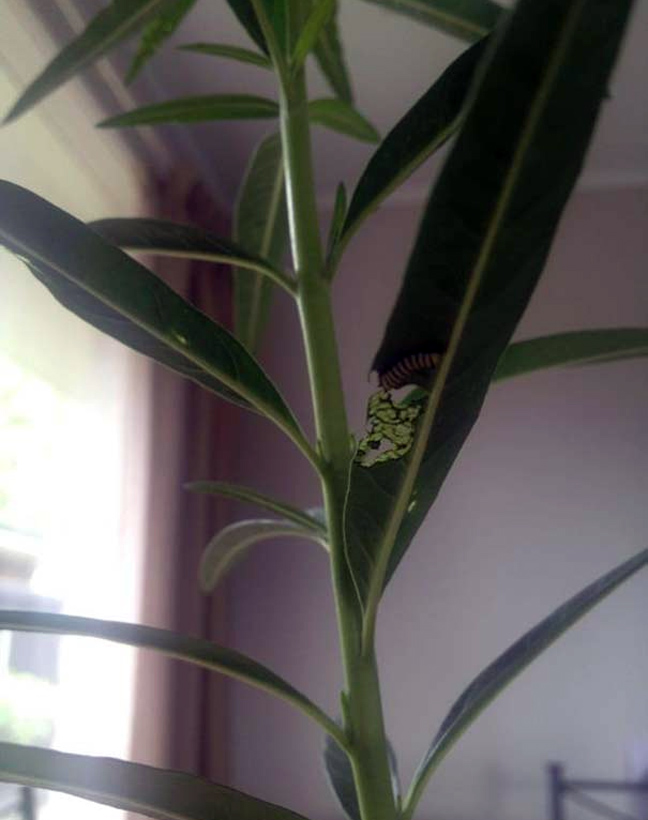 Μια κοπέλα παρατήρησε πάνω στο φυτό της μια κάμπια να της έχει καταστρέψει σε ένα σημείο την πρασινάδα.