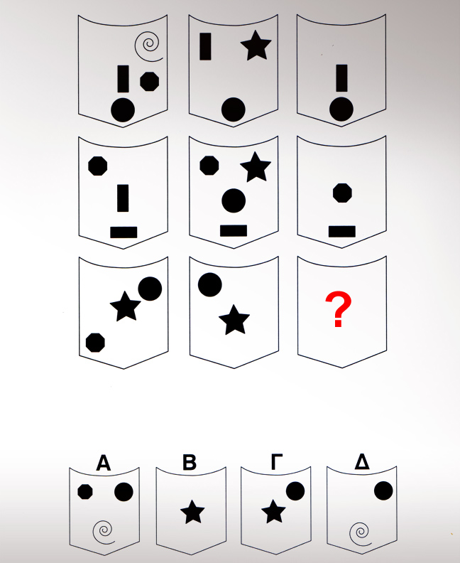 Ποια από τις παρακάτω ασπίδες, Α, Β, Γ ή Δ, πρέπει να τοποθετηθεί στο κενό;