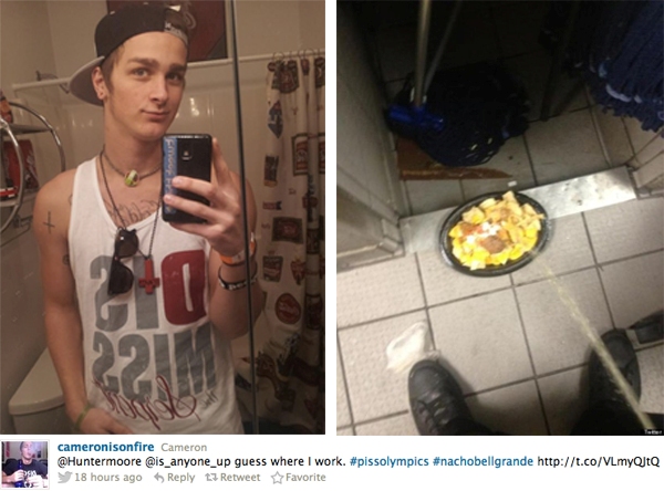 Ο Cameron Jankowski, εργαζόμενος σε αλυσίδα γρήγορου φαγητού στην Ιντιάνα, πόσταρε φωτογραφία στην οποία ουρεί πάνω σε μία παραγγελία. Μέχρι και βίντεο στο you tube είχε ανεβάσει ο αθεόφοβος.
