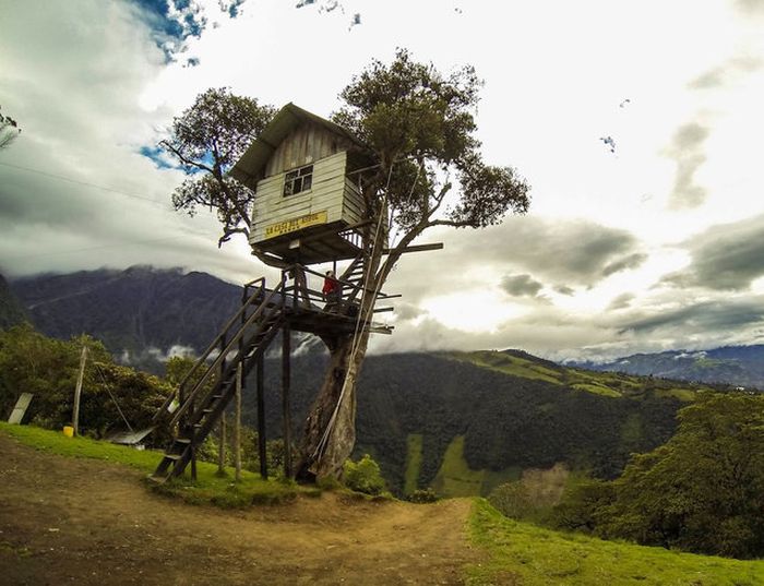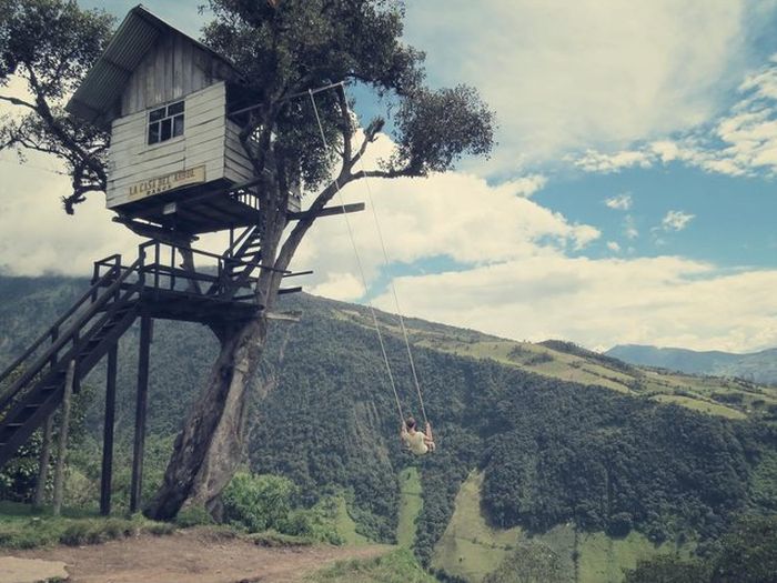 Αυτή η κούνια είναι δεμένη σε ένα δέντρο στην περιοχή La Casa Del Arbol, στο Banos του Εκουαδόρ και έχει θέα στο ηφαίστειο Tungurahua. Φυσικά συνίσταται μόνο σε τολμηρούς.