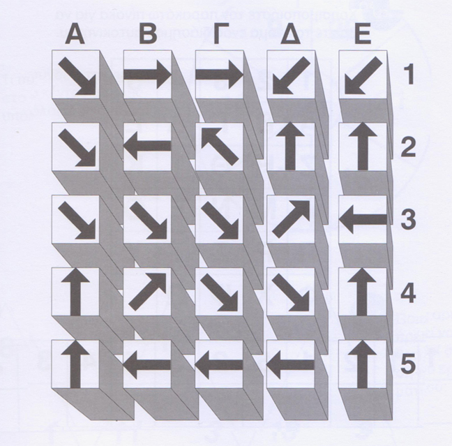 Επιλέξτε το σωστό τετράγωνο για να ξεκινήσετε, έτσι ώστε ακολουθώντας τα βέλη, να περάσετε και από τα 25 τετράγωνα.