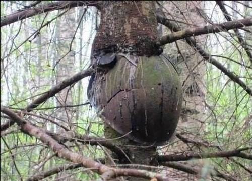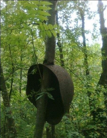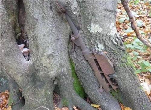 Όχι, ότι θα δείτε στις φωτογραφίες δεν είναι απομεινάρια πολέμου. Είναι στο πλαίσιο φωτογραφικού project σύμφωνα με το οποίο διάφορα όπλα και εξαρτήματα, κατά προτίμηση του 2ου Παγκοσμίου Πολέμου, τοποθετούνται σε δέντρα.