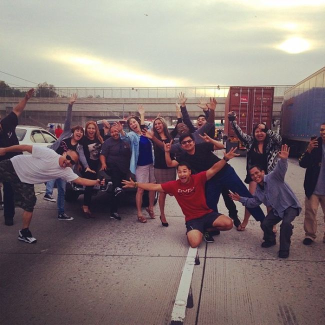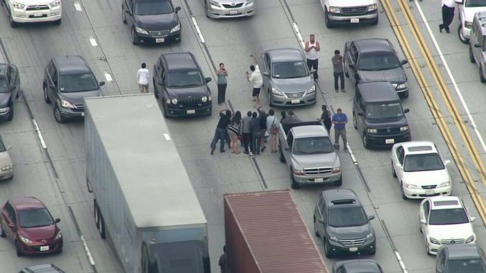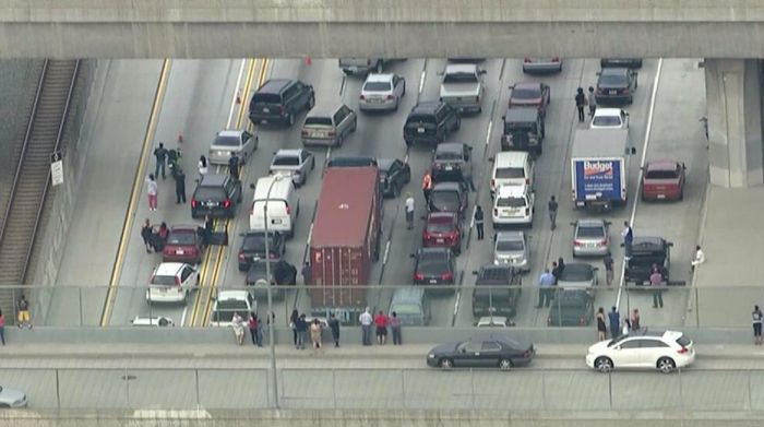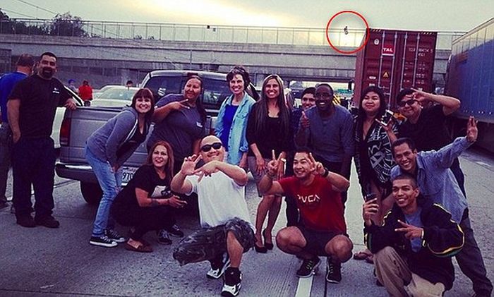 Ένας άντρας απειλούσε να αυτοκτονήσει πέφτοντας από γέφυρα στον αυτοκινητόδρομο 105 στο Λος Άντζελες. Όπως ήταν λογικό η κυκλοφορία διεκόπη και όπως συνηθίζεται σε τέτοιες περιπτώσεις, πλήθος κόσμου έσπευσε να δει τι συμβαίνει. Αυτό όμως που στερείται… λογικής είναι τα χαμογελαστά selfies με φόντο τον άντρα έτοιμο για το σάλτο μορτάλε!