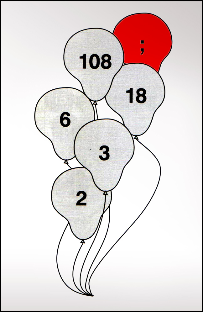 Το 1944. Ο αριθμός σε κάθε μπαλόνι είναι το γινόμενο των αμέσως προηγούμενων δύο αριθμών.