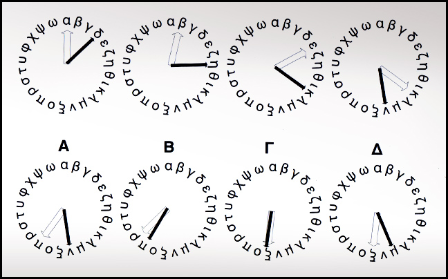 Το Β. Ο λευκός δείκτης προχωράει κατά ένα, τρία, πέντε, επτά, κ.ο.κ γράμματα τη φορά, ενώ ο μαύρος δείκτης προχωράει κατά τρία γράμματα τη φορά.