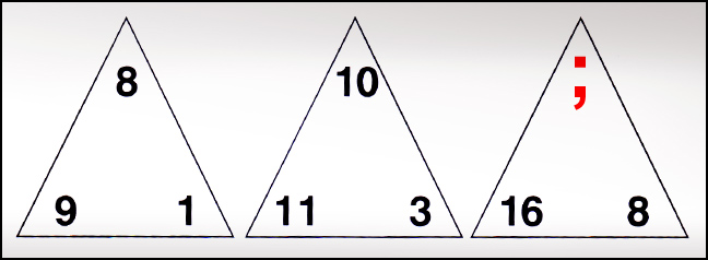Το 15. Ο αριθμός κάτω αριστερά είναι μεγαλύτερος κατά μία μονάδα από τον αριθμό επάνω, ενώ ο αριθμός κάτω δεξιά είναι μικρότερος κατά επτά μονάδες από τον αριθμό επάνω.