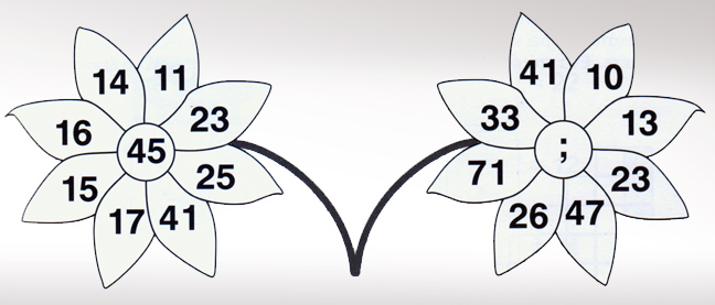 Λείπει το 48. Ο αριθμός στο κέντρο είναι το άθροισμα των ψηφίων των αριθμών στα πέταλα.