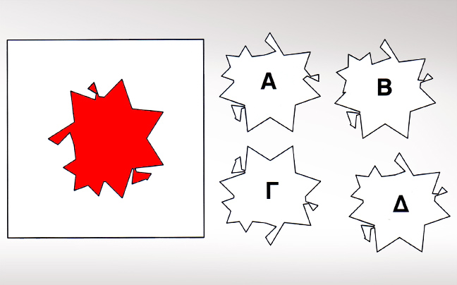 Ποιο από τα Α, Β, Γ ή Δ ταιριάζει; Τα σχήματα μπορούν να περιστραφούν αλλά όχι να αναποδογυριστούν… Η λύση Το Δ.