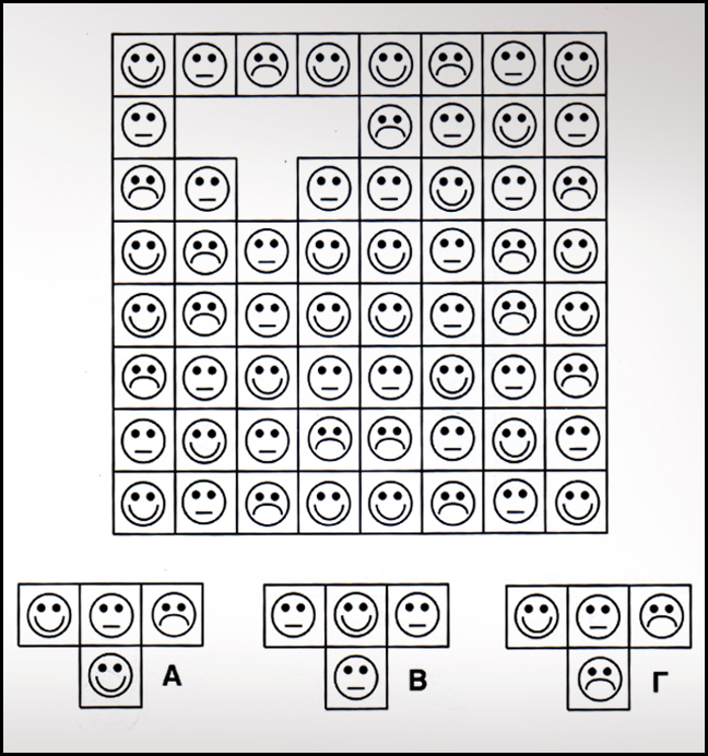 Στον παρακάτω πίνακα οι φατσούλες ακολουθούν μια συγκεκριμένη λογική. Ποια ομάδα, Α, Β ή Γ, συμπληρώνει τον πίνακα;