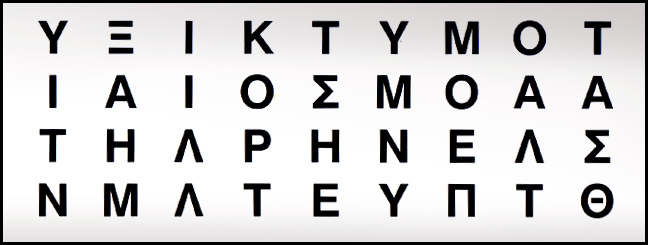 ΘΑ ΤΑ ΠΟΥΜΕ ΣΤΟ ΛΙΜΑΝΙ. Ξεκινώντας από το γράμμα κάτω δεξιά και πηγαίνοντας πάνω κάτω, διαβάζουμε τα γράμματα εναλλάξ (παραλείποντας κάθε φορά μια σειρά γραμμάτων).