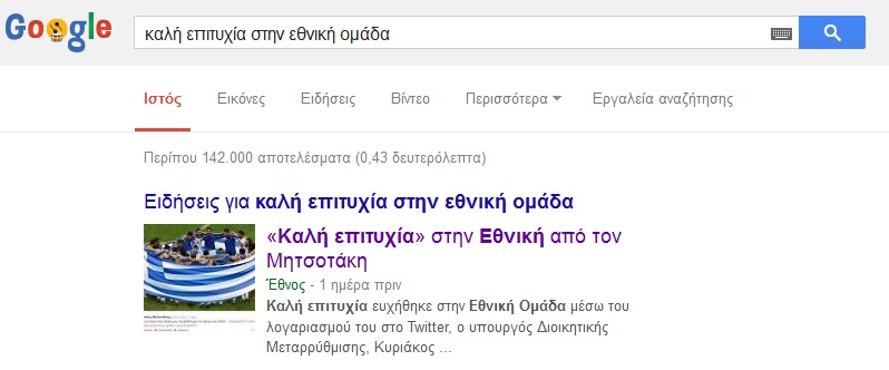 Τι συμβαίνει όμως όταν πατήσουμε «καλή επιτυχία στην εθνική ομάδα» στο Google. Δείτε το και μόνοι σας…