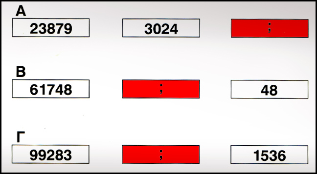 Α. 0, Β. 1344, Γ. 3888. Τα ψηφία κάθε αριθμού σε κάθε κουτί πολλαπλασιάζονται μεταξύ τους και το γινόμενο είναι ο αριθμός στο επόμενο κουτί.