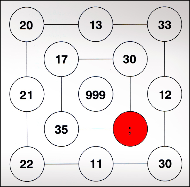 Το 44. Το άθροισμα των ψηφίων των αριθμών που συνδέονται μεταξύ τους είναι 27.