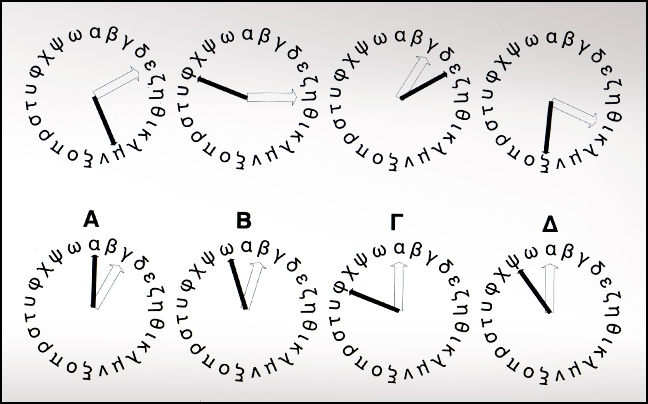 Το Δ. Ο λευκός δείκτης προχωράει κατά δύο γράμματα, μετά πηγαίνει πίσω τέσσερα γράμματα, μετά έξι μπροστά, οκτώ πίσω κ.ο.κ., ενώ ο μαύρος δείκτης προχωρά κατά εννέα γράμματα τη φορά.