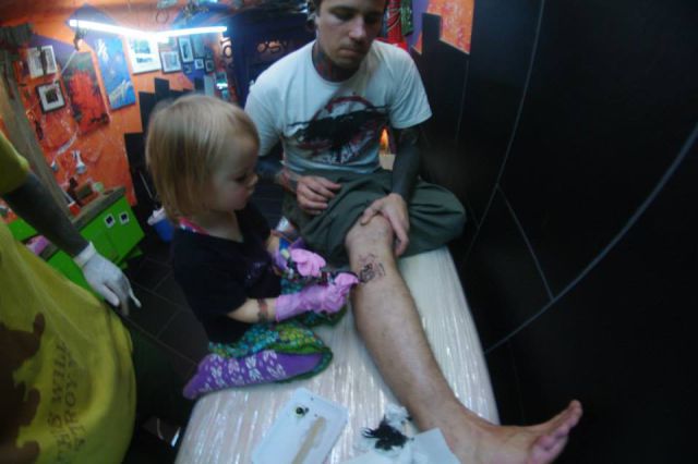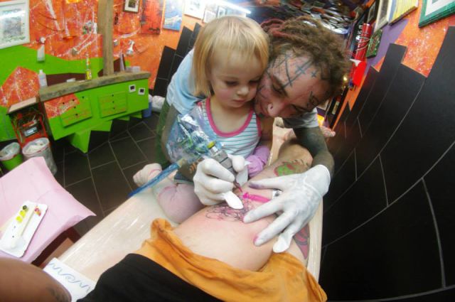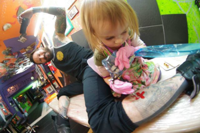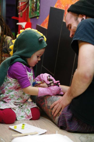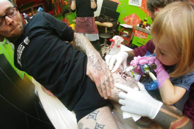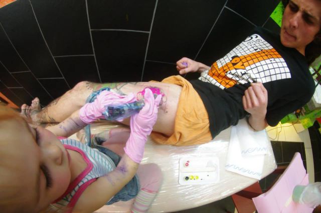 Τριών χρονών και χτυπάει τατουάζ. Κι όχι, τα σχέδια της δεν είναι καλά, ούτε δείχνουν ότι πρόκειται για ένα παιδί θαύμα. Το αντίθετο μάλιστα. Κι αυτό είναι που κάνει κάποιους να αφήνονται στα χεράκια της. Για ένα τατουάζ βγαλμένο από την παιδική αθωότητα.