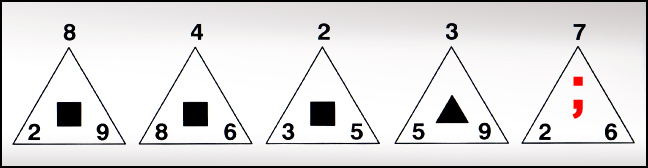 Ένα τετράγωνο. Όταν οι αριθμοί δίνουν γινόμενο έναν περιττό αριθμό, τότε στη μέση του τριγώνου υπάρχει τρίγωνο. Αν το γινόμενο αυτό είναι άρτιος αριθμός, τότε στο κέντρο υπάρχει τετράγωνο.