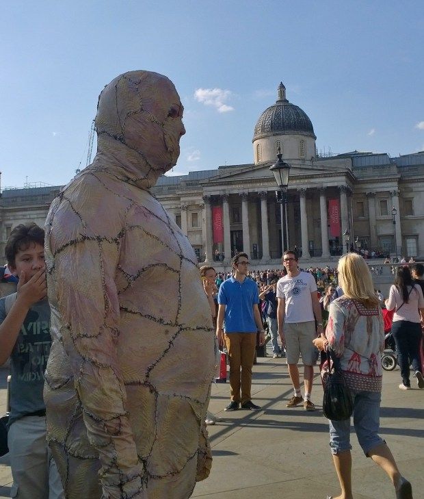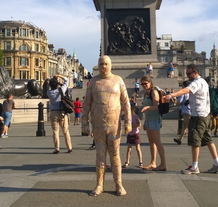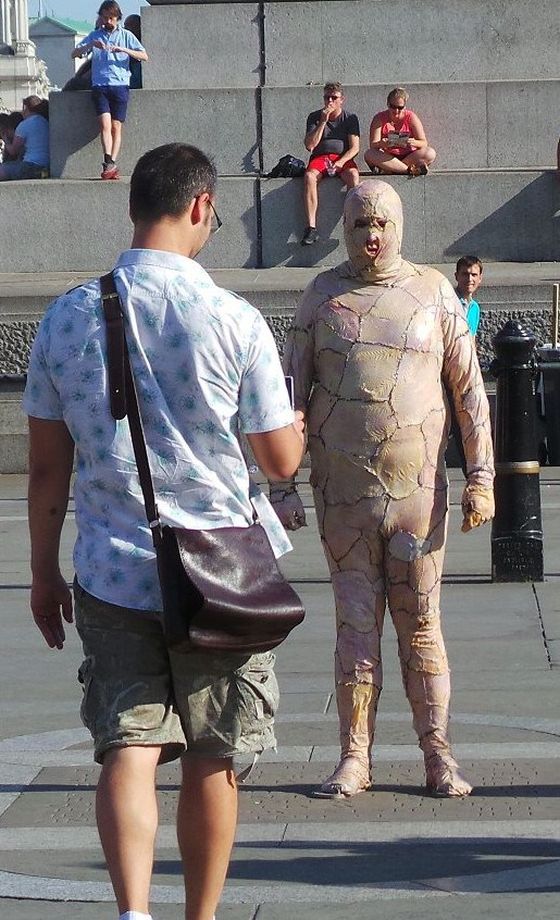 Ένας άντρας στην Αγγλία έραψε ένα κοστούμι από κοτόπουλα και βγήκε στους δρόμους. Δικαιολόγησε την κίνηση του ως έκφραση τέχνης, αλλά μάλλον δεν έπεισε και πολλούς.