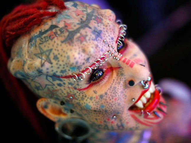 Άνθρωποι που πραγματικά είναι αγνώριστοι κάτω από δεκάδες στρώσεις μελάνης και τρυπημένοι σε κάθε πιθανή και απίθανη επιφάνεια της σάρκας τους. Φυσικά, τα περισσότερα ίσως βλέμματα συγκέντρωσε η Μεξικάνα Mary Jose Cristerna (κεντρική φωτογραφία), αλλά και ο άντρας με το κατακόκκινο κρανίο.