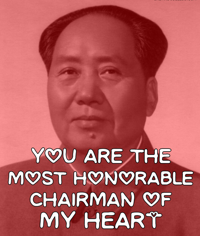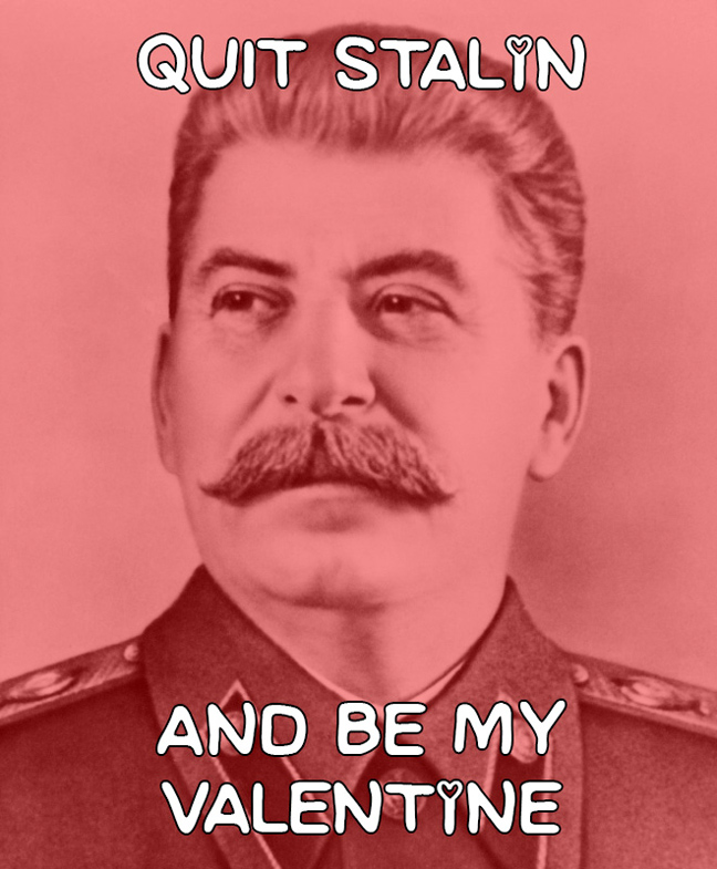 Το ότι είστε ερωτευμένοι, δε σημαίνει ότι δεν έχετε και… χιούμορ! Πείτε ένα διαφορετικό «σ’ αγαπώ», με τον … Αδόλφο Χίτλερ που λέει «you are mein» (παραφτάζοντας το mine με το mein από το «Mein kempf» «ο αγών μου»), ή με τον Στάλιν, τον Τρότσκι και άλλους αμφιλεγόμενους.