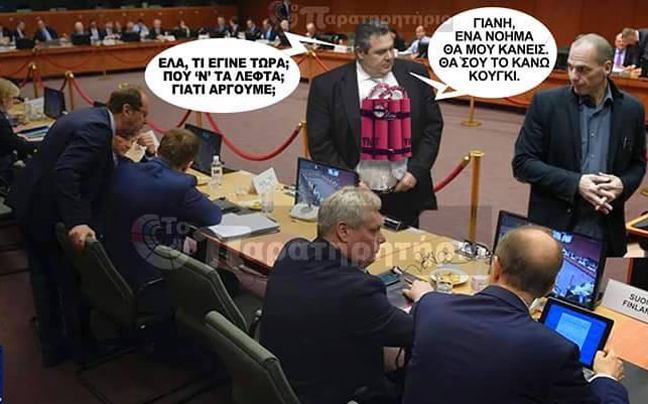 Ο,ΤΙ ΝΑ 'ΝΑΙ #αστείες εικόνες#Γιάνης Βαρουφάκης Ειδική αποστολή στο επόμενο Eurogroup Ένα νόημα του... Γιάνη αρκεί 19·02·2015 01:03 1 σχόλια