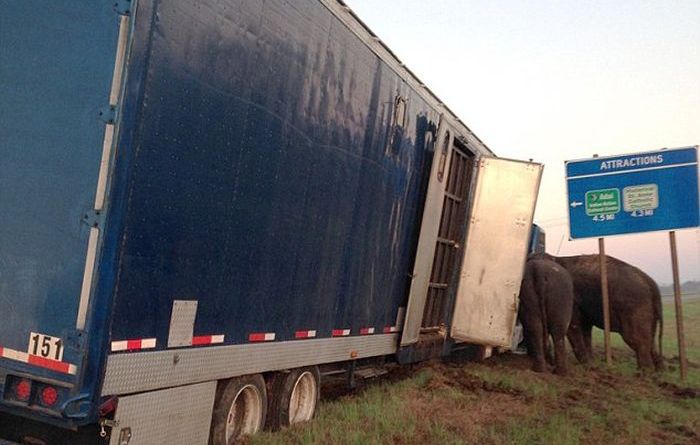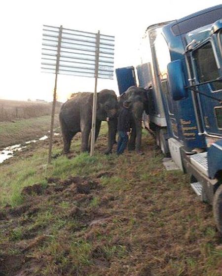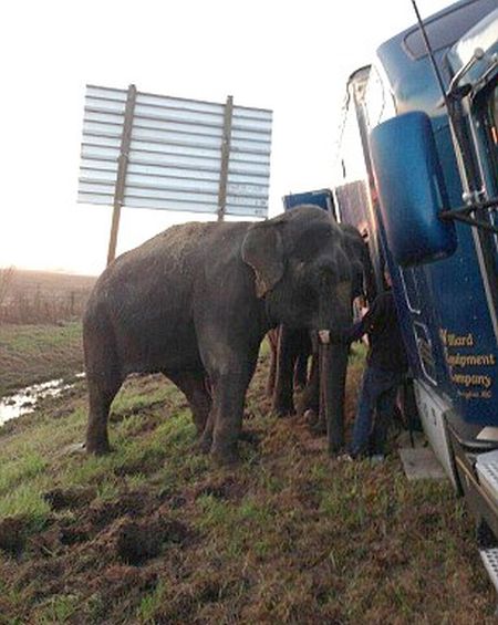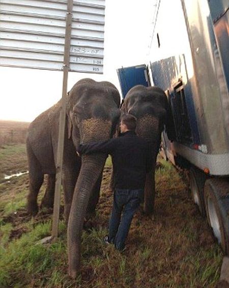 Ένα φορτηγό που μετέφερε ελέφαντες τσίρκου κόλλησε στην λάσπη σε αυτοκινητόδρομο στην Λουιζιάνα όταν ο οδηγός σταμάτησε για να κάνει ένα μικρό διάλειμμα. Όταν συνειδητοποίησε ότι είχε εγκλωβιστεί έκανε το απίθανο: έπεισε τους ελέφαντες να σπρώξουν και να ελευθερώσουν το φορτηγό!
