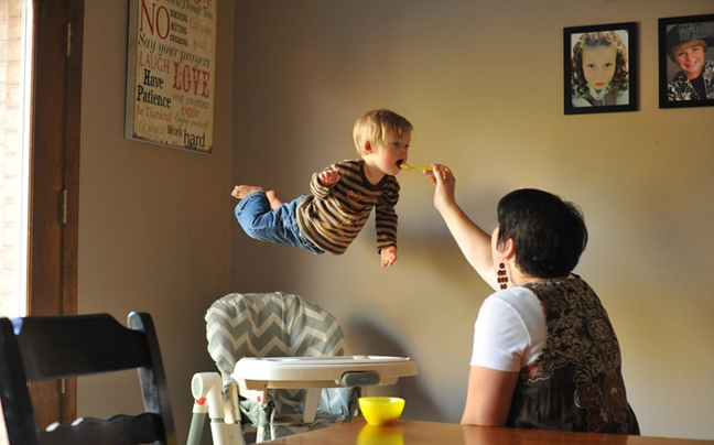 Στις φωτογραφίες ο ίδιος κρατά τον γιο του στον αέρα και στη συνέχεια «σβήνει» την εικόνα του. Έτσι «γεννήθηκε» ο «ιπτάμενος Wil».