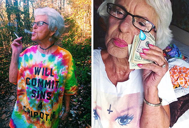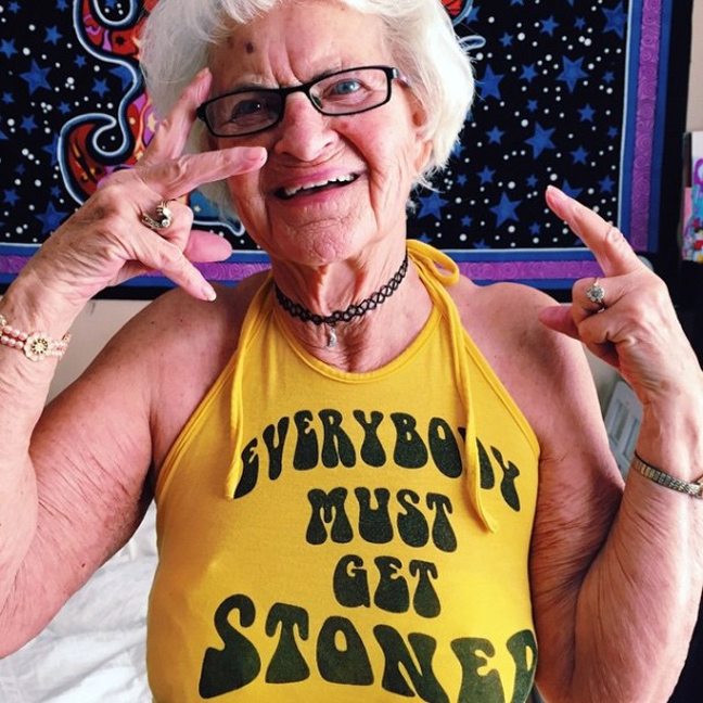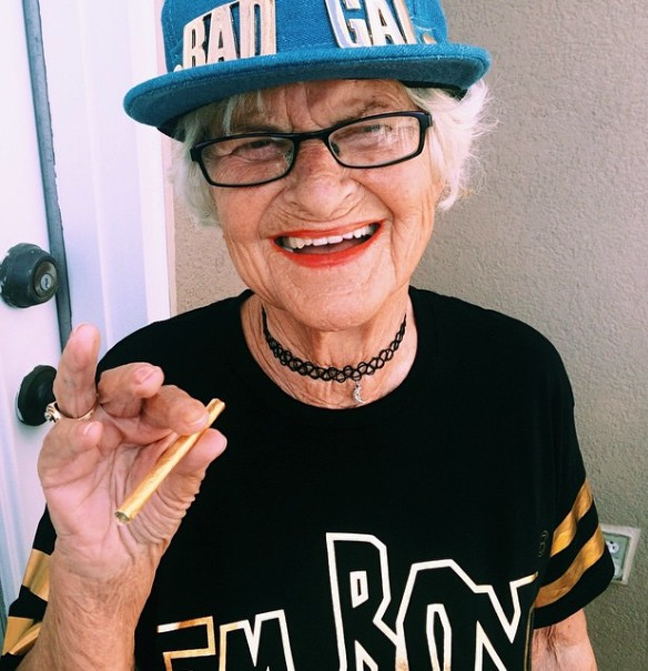 Η ηλικιωμένη ζει στο Λος Άντζελες και όπως βλέπετε και από τις φωτογραφίες, όχι μόνο είναι άτακτη, αλλά είναι και μεγάλη λάτρης της μαριχουάνα!