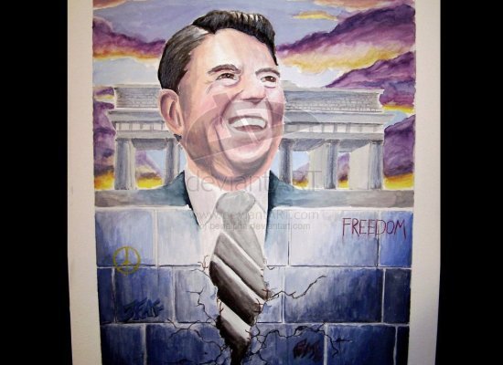 Ο Ρόναλντ Ρέιγκαν στο τείχος του Βερολίνου