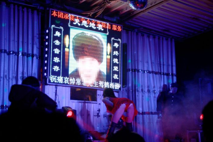 Στην Κίνα έχει γίνει πολύ δημοφιλές να εμφανίζονται strippers σε κηδείες και να δείχνουν το ταλέντο τους κάνοντας το θλιβερό γεγονός να μοιάζει με happening.