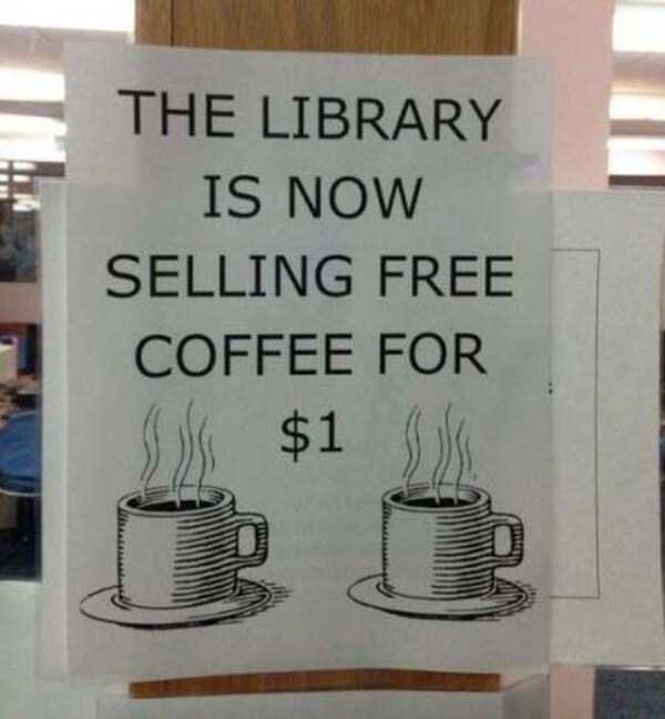 Η βιβλιοθήκη πουλάει δωρεάν καφέ προς 1 δολάριο