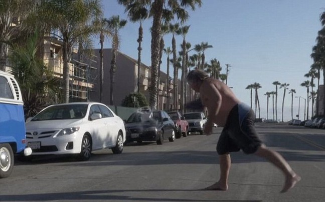 «Δεν νομίζω καν να είναι νόμιμο αυτό», λέει, αν και, σύμφωνα με τη Daily Mail, είναι απολύτως νόμιμο να πετούν drones στο Huntington Beach.