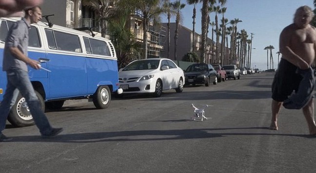 Εργαζόμενοι της εταιρείας Lucky 7 Drones με έδρα στο Huntington Beach της Καλιφόρνια γύριζαν ένα εκπαιδευτικό βίντεο για το drone αξίας 1.300 δολαρίων της εταιρείας, όταν ένας κάτοικος δυσανασχέτησε.
