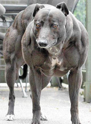 Δεν είναι καθόλου πλάκα. Ο σκύλος της photo, ή για να ακριβολογούμε, η σκύλα, έχει γίνει ένα μάτσο μύες γιατί ο ιδιοκτήτης της την έχει πλακώσει στα αναβολικά!