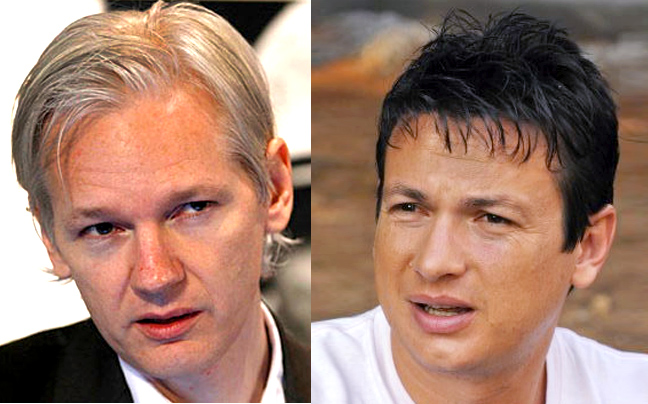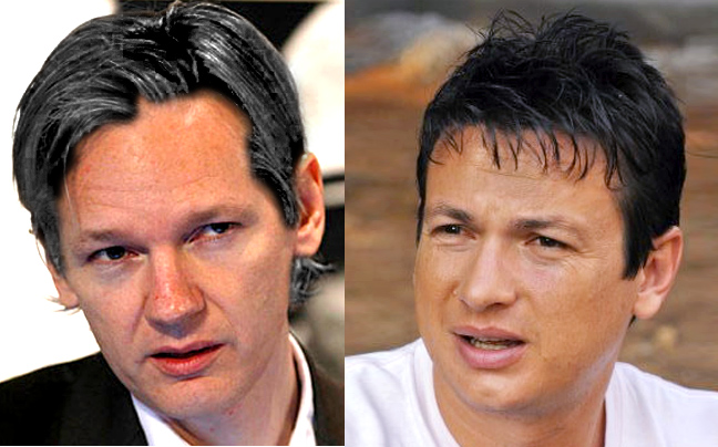 Ο Έλληνας ηθοποιός (δεξιά) μοιάζει τόσο με τον Τζούλιαν Ασάνζ, τον άνθρωπο πίσω από το wikileaks, που θα μπορούσε κάλλιστα να είναι αδερφός του. Δείτε και την εκδοχή με τον Ασάνζ να έχει… βαμμένο το μαλλί…