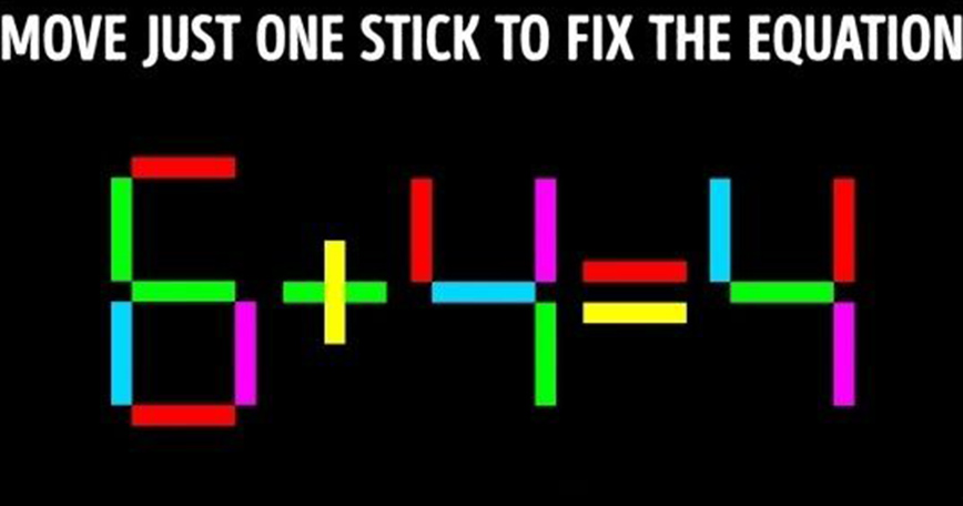 Όπως μπορείτε να παρατηρήσετε στην παρακάτω εικόνα υπάρχει ένα άθροισμα το οποίο δεν είναι σωστό. Ωστόσο, για να αποτελεί μια σωστή πράξη πρέπει να αλλάξει ένα και μόνο ξυλάκι θέση. Τότε το άθροισμα θα έχει λογική εξήγηση. Μπορείτε να βρείτε ποιο είναι αυτό; Δείτε την απάντηση παρακάτω.