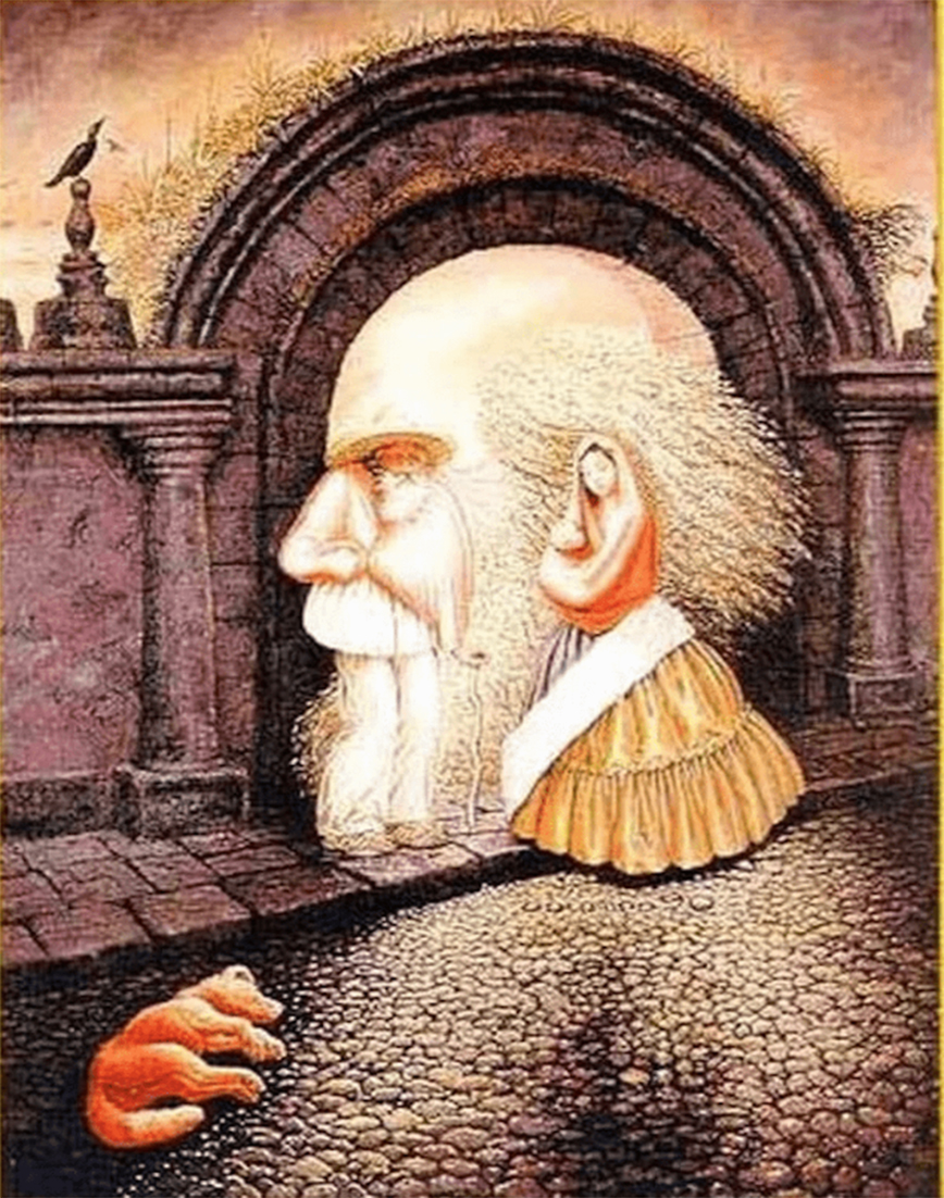 Πρόκειται για μια ψευδαίσθηση η οποία δείχνει το πρόσωπο ενός άντρα αλλά στην πραγματικότητα κρύβονται περισσότερα πίσω από αυτό. Μπορείτε να εντοπίσετε τα συνολικά εννέα πρόσωπα; Το ένα από αυτά είναι το προφανές!