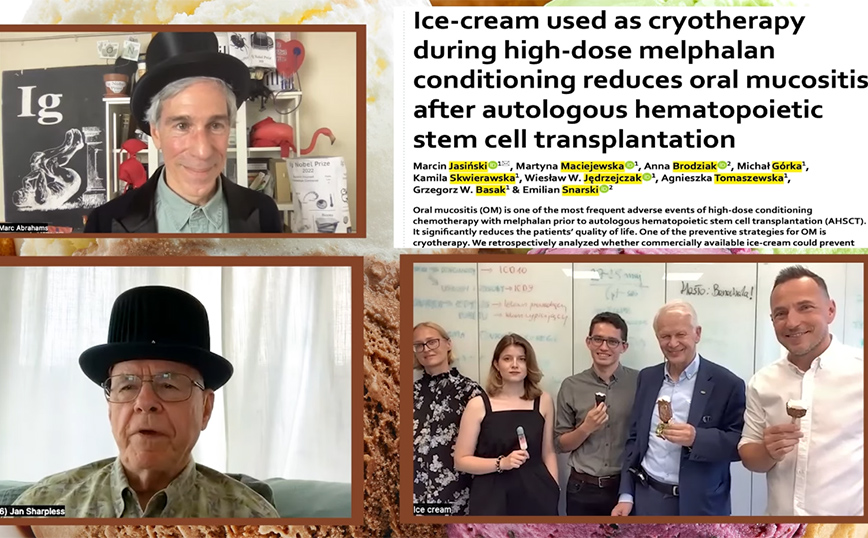Στους επιστήμονες που έδειξαν ότι όταν οι ασθενείς υποβάλλονται σε μερικές μορφές τοξικής χημειοθεραπείας, υποφέρουν λιγότερες παρενέργειες όταν το παγωτό αντικαθιστά ένα από τα παραδοσιακά συστατικά της διαδικασίας.