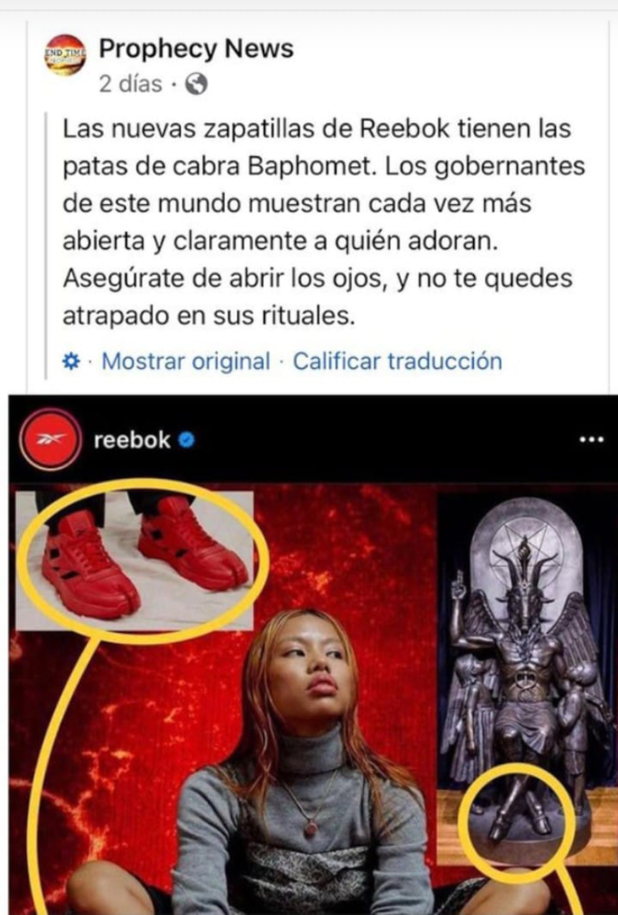 «Τα νέα αθλητικά παπούτσια της Reebok έχουν τα πόδια του Μπαφομέτ» υποστηρίζει η σελίδα που είναι αφιερωμένη στη διάδοση «των τελευταίων προφητειών του Κυρίου και Σωτήρα μας Ιησού Χριστού κατά τις τελευταίες ημέρες της Γης».