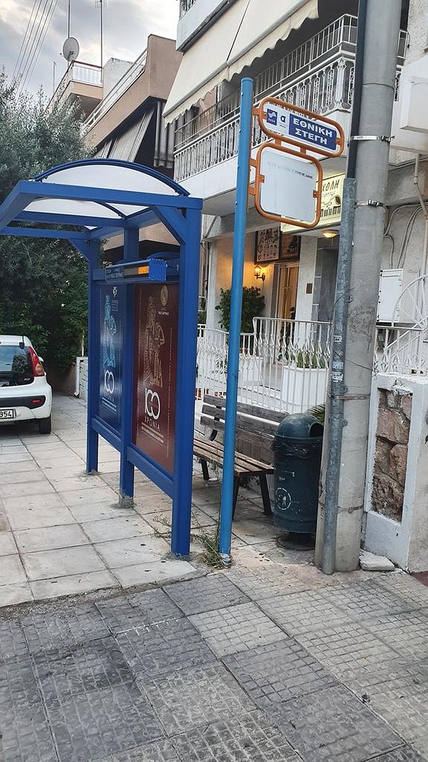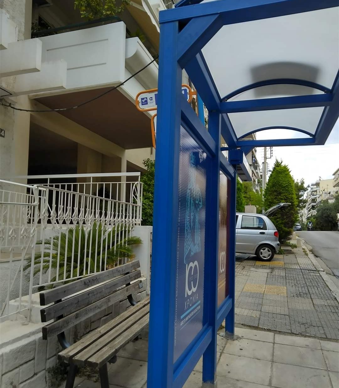 Viral έχουν γίνει οι εικόνες από την στάση λεωφορείων στη Νέα Σμύρνη, με το παγκάκι τοποθετημένο έξω από το στέγαστρο.