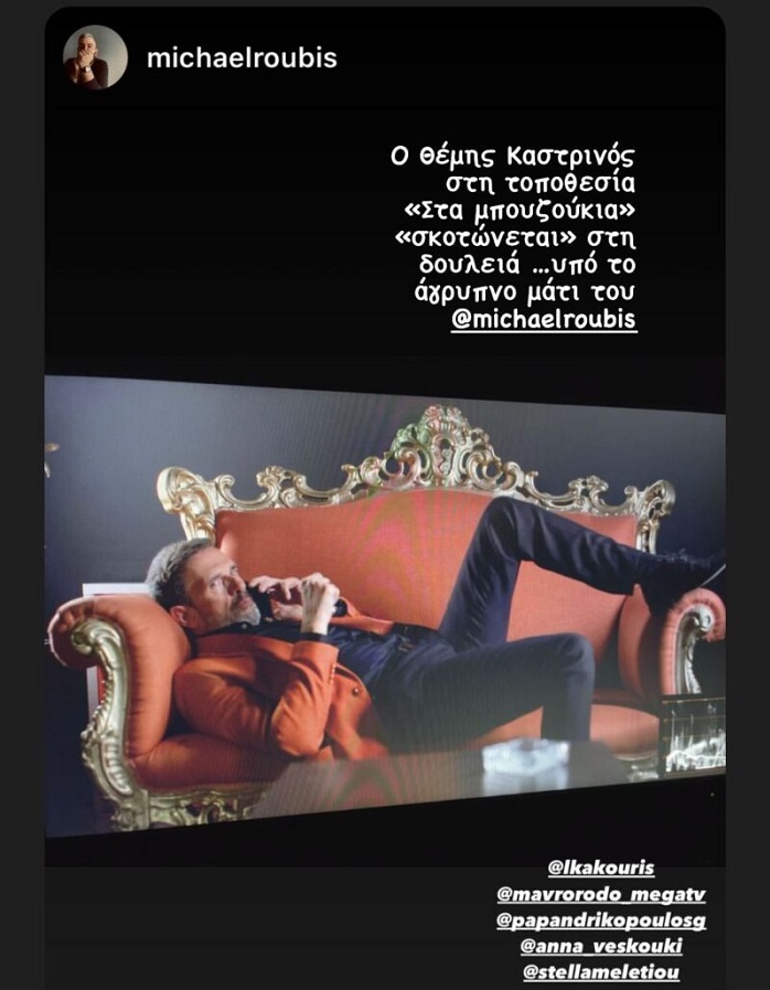 «Ο Θέμης Καστρινός στην τοποθεσία “Στα μπουζούκια”, “σκοτώνεται” στη δουλειά υπό το άγρυπνο μάτι του @michaelroubis».