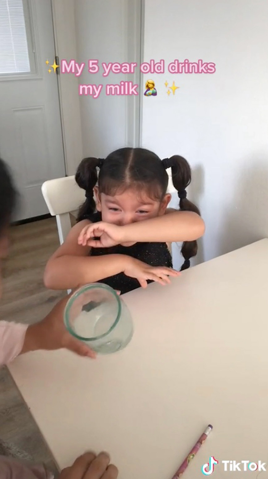 «Είσαι έτοιμη να δοκιμάσεις το γάλα μου;», ρώτησε το παιδί, το οποίο κλείνοντας τη μύτη του προσπαθούσε να πιει, ενώ ανέφερε πως «μυρίζει άσχημα, όχι όπως το αληθινό γάλα που πίνουμε».