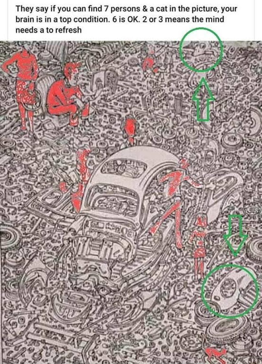 Οι σπαζοκεφαλιές και οι γρίφοι ακονίζουν το μυαλό ειδικά αν περιλαμβάνουν εικόνες. Όπως η παρακάτω που κρύβει συνολικά επτά ανθρώπους και μία γάτα. Μπορείς να τα εντοπίσεις; Δες την απάντηση παρακάτω…